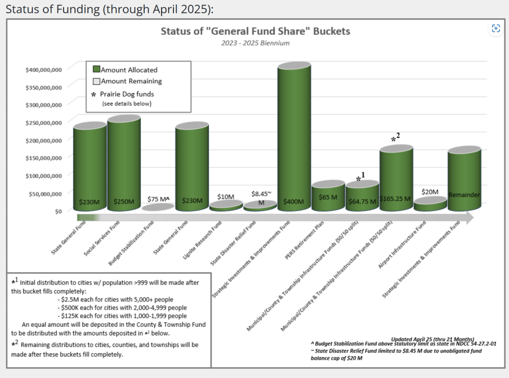 While Prairie Dog funds are not certain, and many lawmakers forecast the buckets won’t fully fill this biennium, it’s the fact that when these dollars are provided, they are committed to local government. NDACo continues to support efforts to move the Prairie Dog buckets up to increase the dependability of the buckets filling.
