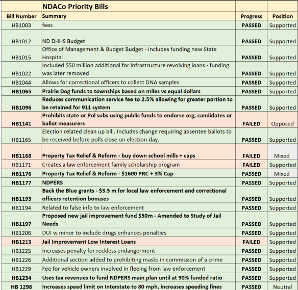 This week more than 400 county officials and employees participated in the NDACo Legislative Wrap Up report online. The good news is if you missed it – you aren’t missing out on the information. We have included those resources here for you to review when you have time. Included in this blog post is a list of the NDACo Priority Bills, the presentation slides provided and a recording of the wrap up report.