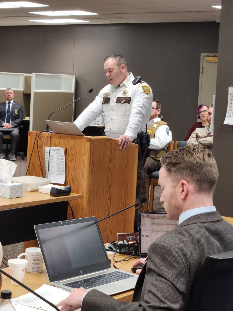 About 20 ND Sheriffs & Deputies attended Law Day at the Capitol Thursday. They met with legislators and sat with their Representatives and Senators during floor sessions. Many attended a hearing to support changes to the ND State Crime Lab.